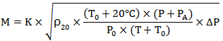 其中ρ20為20℃標(biāo)準(zhǔn)大氣壓下被測介質(zhì)的密度;P為設(shè)計壓力;PA為地區(qū)大氣壓;P0為標(biāo)準(zhǔn)大氣壓0.101325MPa;T為設(shè)計溫度;T0=273.15℃。注意這些公式的單位:M的單位kg/h,ρ20的單位kg/m3,T單位為℃,T0單位為℃,P單位為MPa,P0單位為MPa,PA單位為MPa,△P為差壓變送器差壓(指差壓變送器輸出對應(yīng)的量程,單位為MPa)。