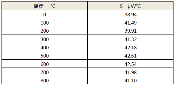 ...................公式1表1 鎧裝連續(xù)熱電偶電纜及鎧裝連續(xù)熱電偶熱電動(dòng)勢(shì)率(賽貝爾系數(shù))