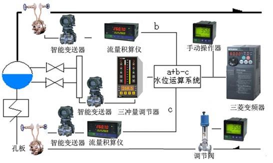 為克服"虛假水位"現象對給水控制系統造成的不利影響,鍋爐水位采用三沖量串級調節方式控制給水變頻器轉速,穩定鍋爐水位,確保鍋爐安全運行。