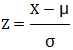 在這個公式中,Z是轉(zhuǎn)換后的標準值,X 是原始數(shù)據(jù)點的值,μ是原始數(shù)據(jù)的平均值和σ是原始數(shù)據(jù)的標準差。