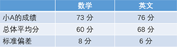 也就是說,當標準差為1時,小A的數(shù)學、英語成績標準差分別是1.625、1.333。不同學科的成績轉(zhuǎn)化為標準得分后,變得可比較了。
