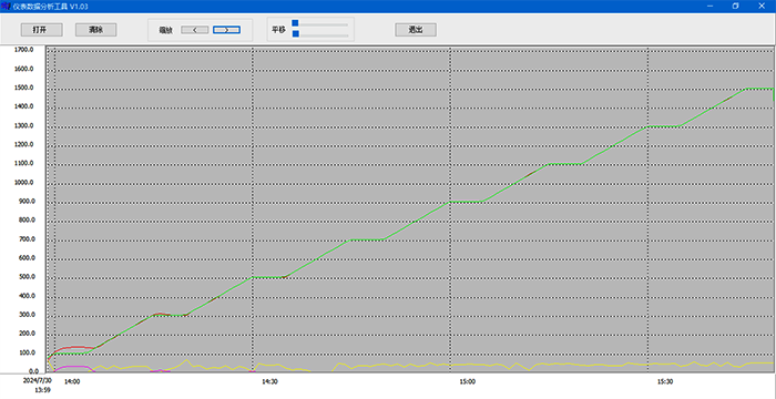 用觸摸屏導出的數據畫曲線,紅色PV,綠色SV,黃色MV;跟隨性大幅提升,300-500℃跟隨性在±2℃之內,500℃以上跟隨性在±1℃之內;溫控儀控溫精度仍然維持高精度。