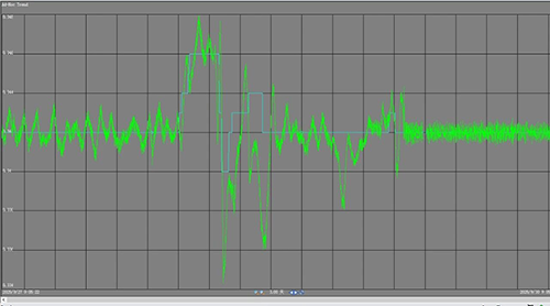 把壓力自動控制的比例度增強了30倍,修改為1%。壓力自動控制可以控制在設定值附近,但是有點同相位等幅振蕩的趨勢。將比例度調整為2%,調節閥振蕩減弱,壓力控制更穩定。