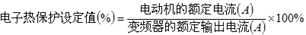 2、有的變頻器則在設定電動機的額定電流后,再設定動作電流,這時采用運行電流百分數的表示方法,即
