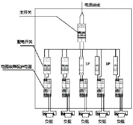 電弧故障保護(hù)器應(yīng)設(shè)置在末端配電箱的進(jìn)線開關(guān)下側(cè),其額定電流值應(yīng)與進(jìn)線回路保護(hù)開關(guān)一致;